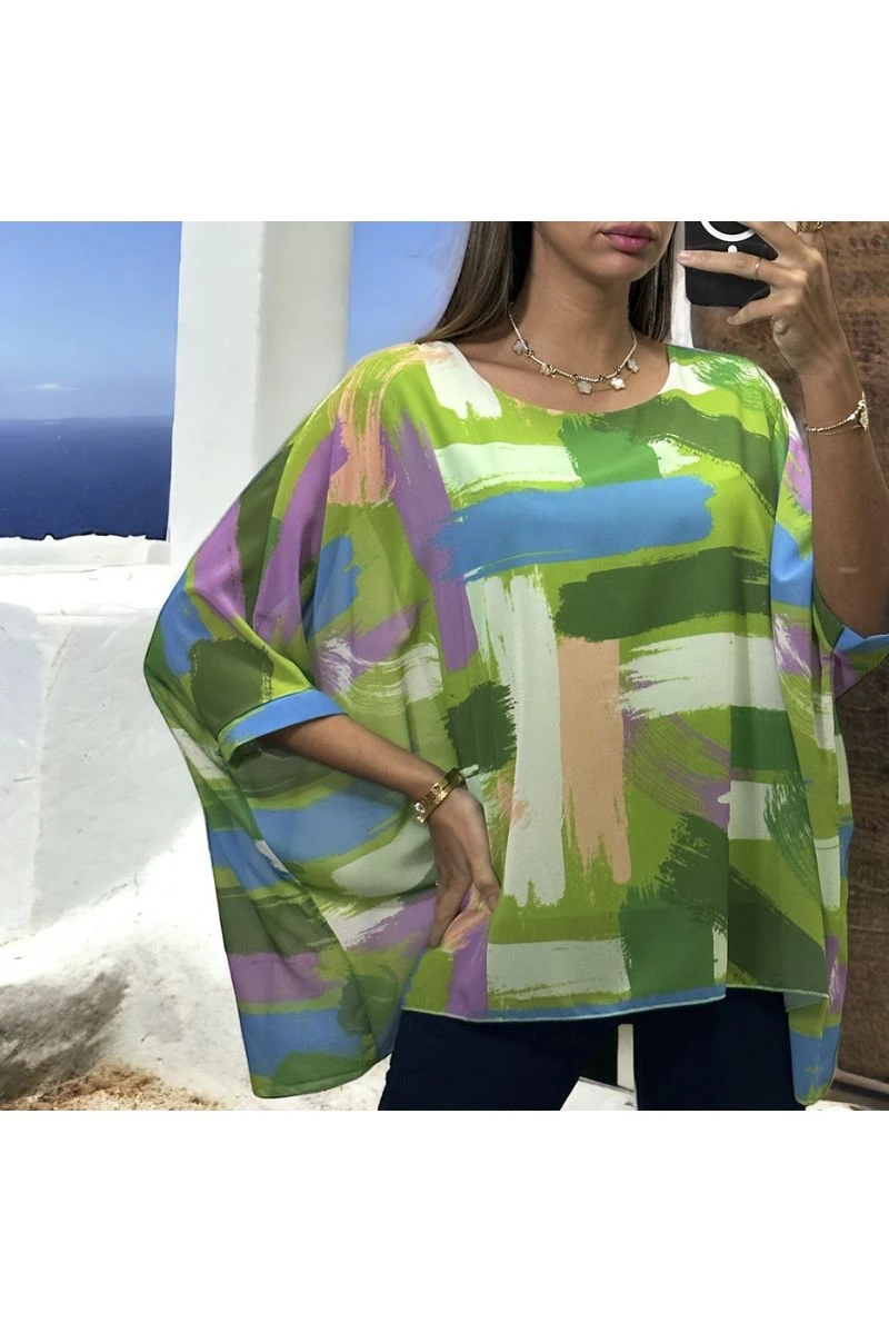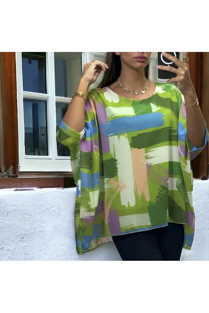 Blouse over size motif vert doublé