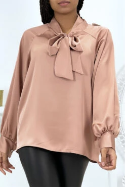 Blouse satinée rose poudrée