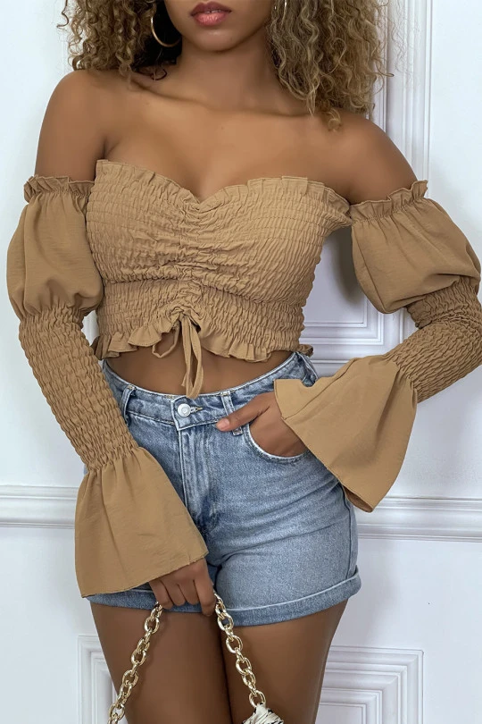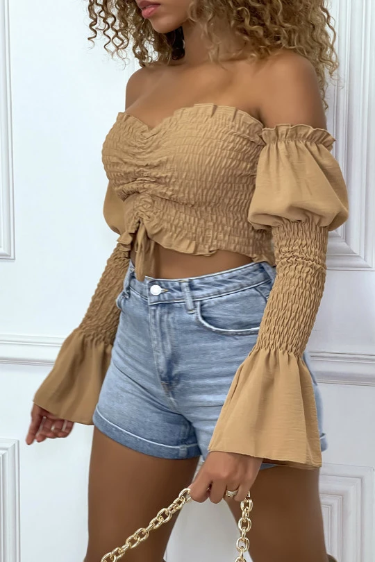Bustier camel ajustable à manches volant