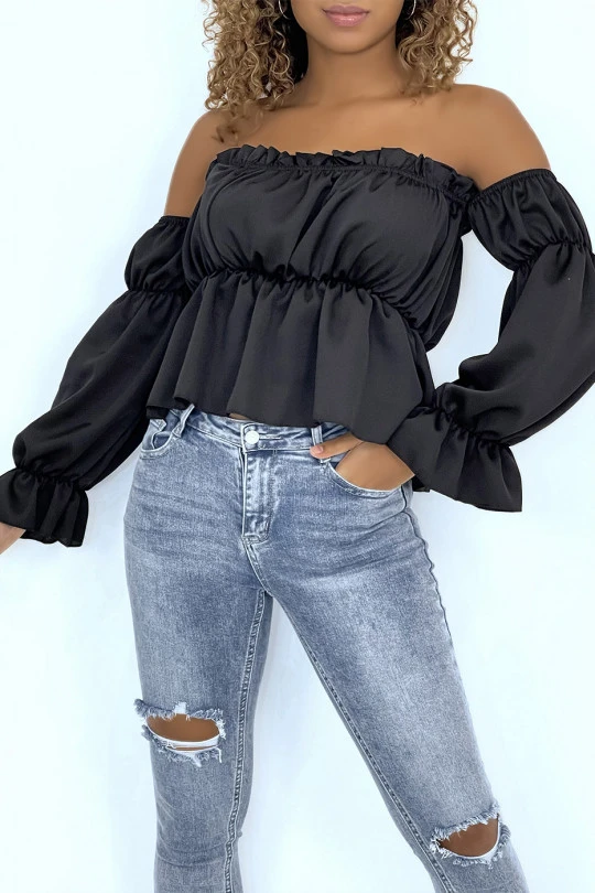 Bustier pour femme satiné en noir avec manches à part. Vêtement mode femme pour les soirées et les fêtes
