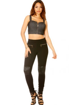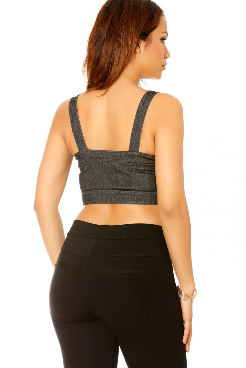 Mega destockage Bustier zippe en jeans noir avec bretelles et bonnet. Top Femme 2851