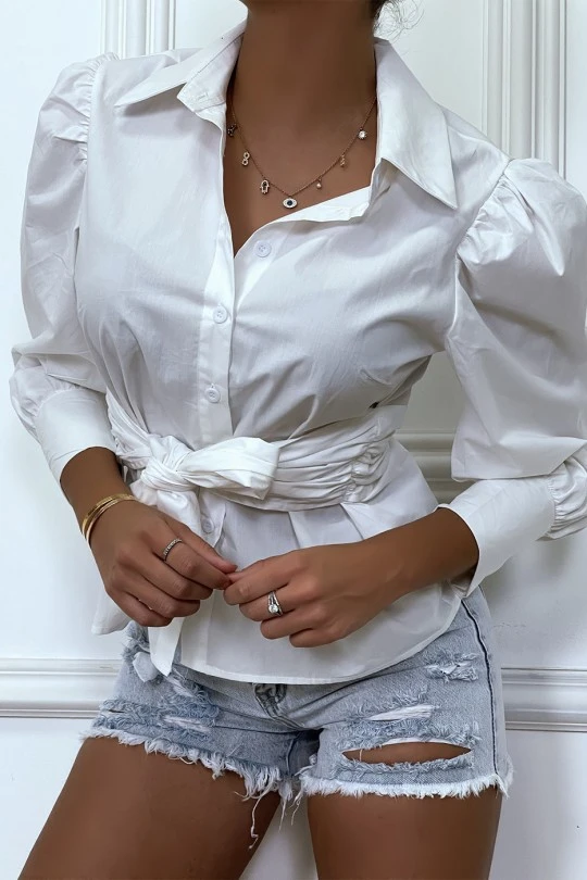 Chemise blanche avec manches bouffante et ceinture intégré. Mode femme pas cher