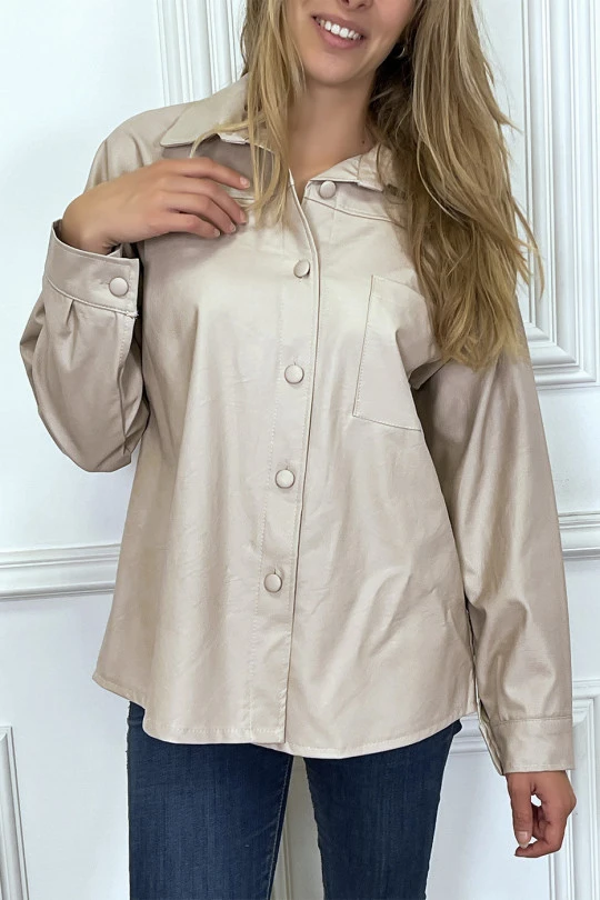 Chemise en simili beige over size. Chemise femme en simili très fashion