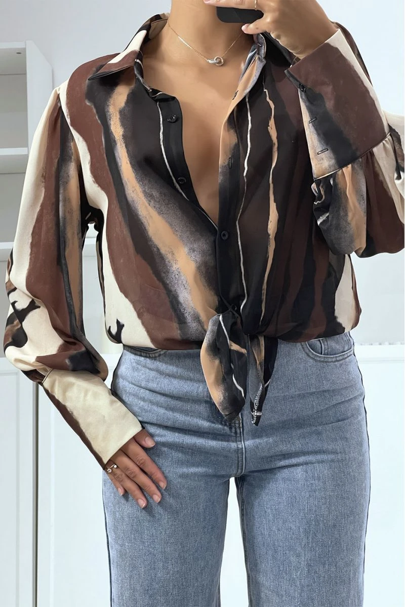 Chemise marron à imprimé mélange de couleurs transparente chic et tendance