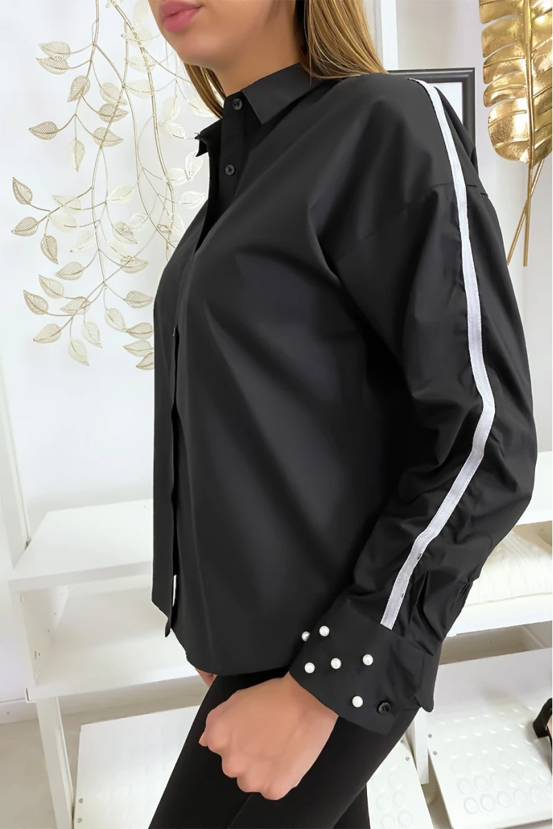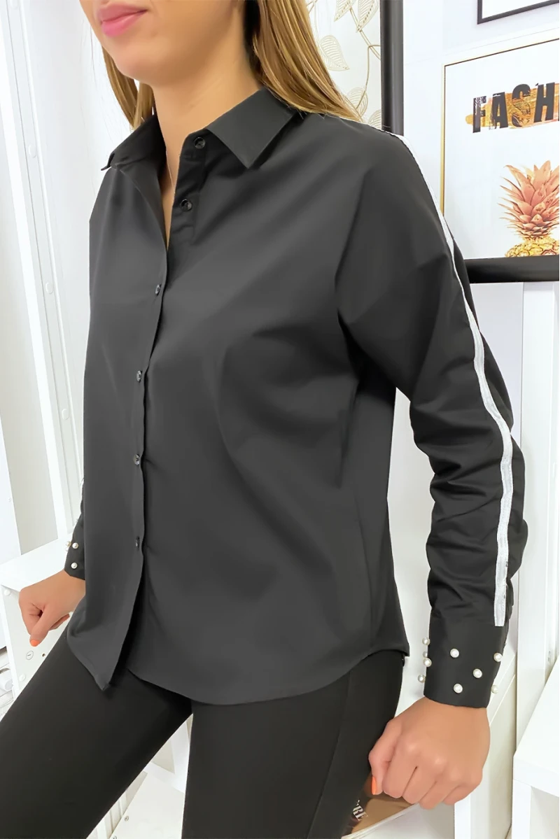 Chemise pour femme en noir avec bandes et perles aux manche. Vêtement pour femme chic et pas cher