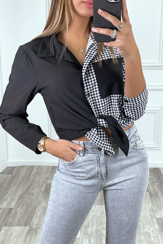 Chemise noir bicolor à carreaux blanc et noir