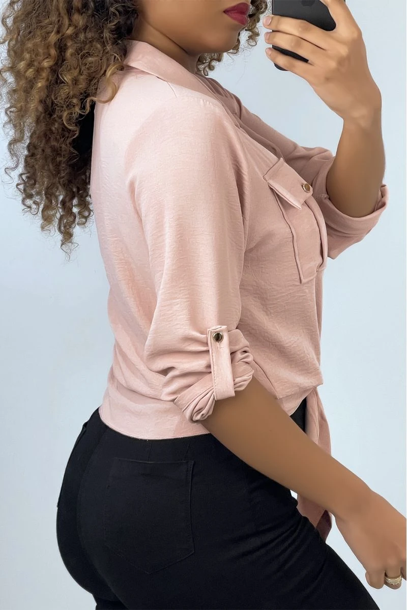 Chemise à poches à la poitrine, col à revers et nouable au niveau de la taille. Son style classique chic et sa couleur vitaniminée font d’elle un indispensable de l’été.
