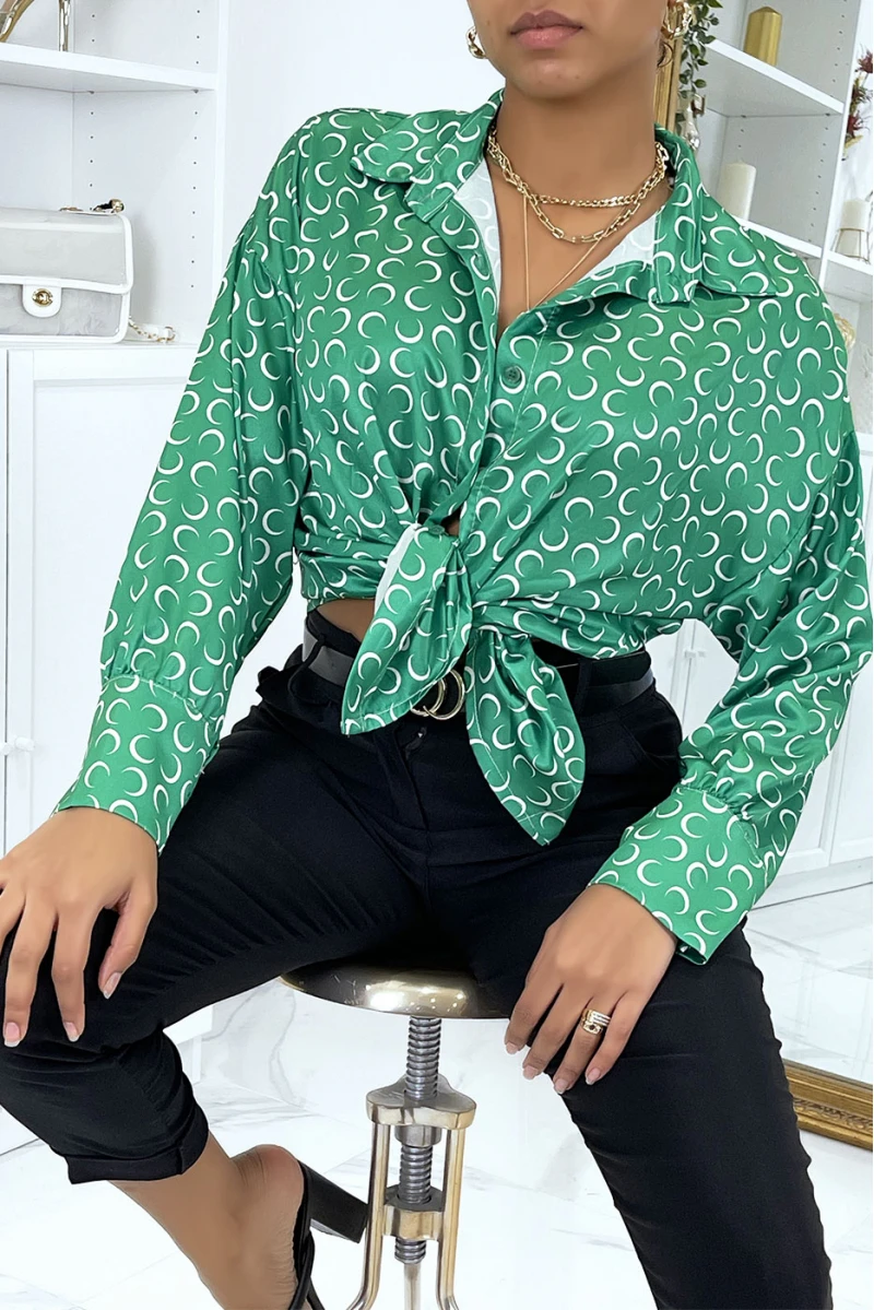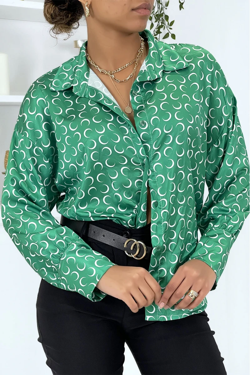 Chemise satinée verte à imprimé lune