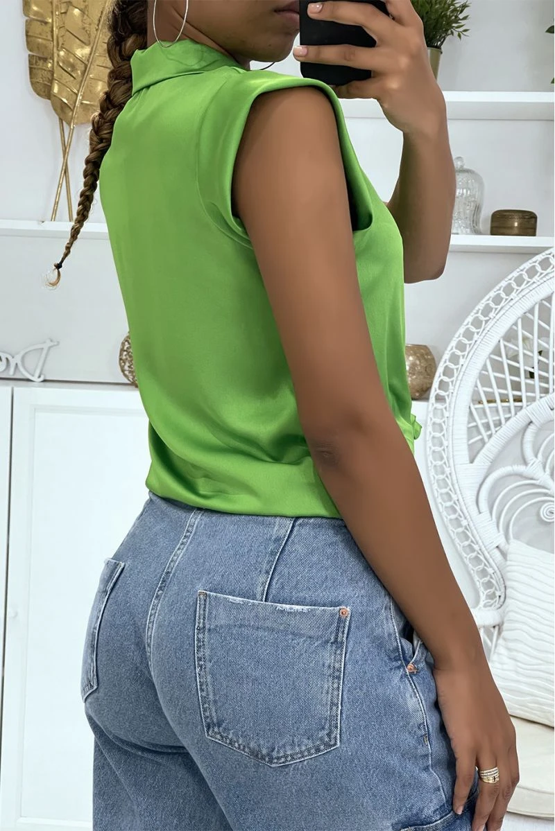 Chemise satinée verte anis à manches courtes couleur vitaminée hyper tendance cette été