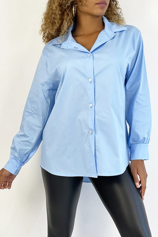 Chemise turquoise en coton très tendance et agréable à porter. Chemise mode femme fashion et pas cher