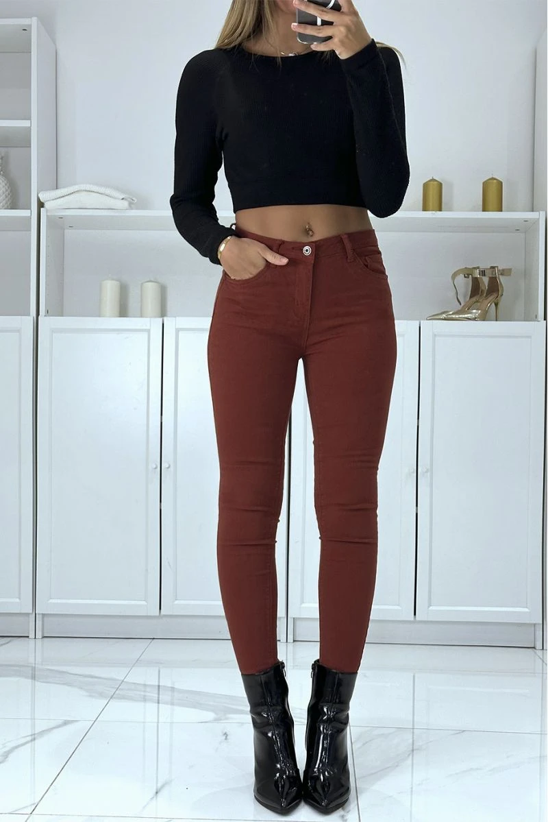 Jean slim cognac extensible avec poches et fermeture zip