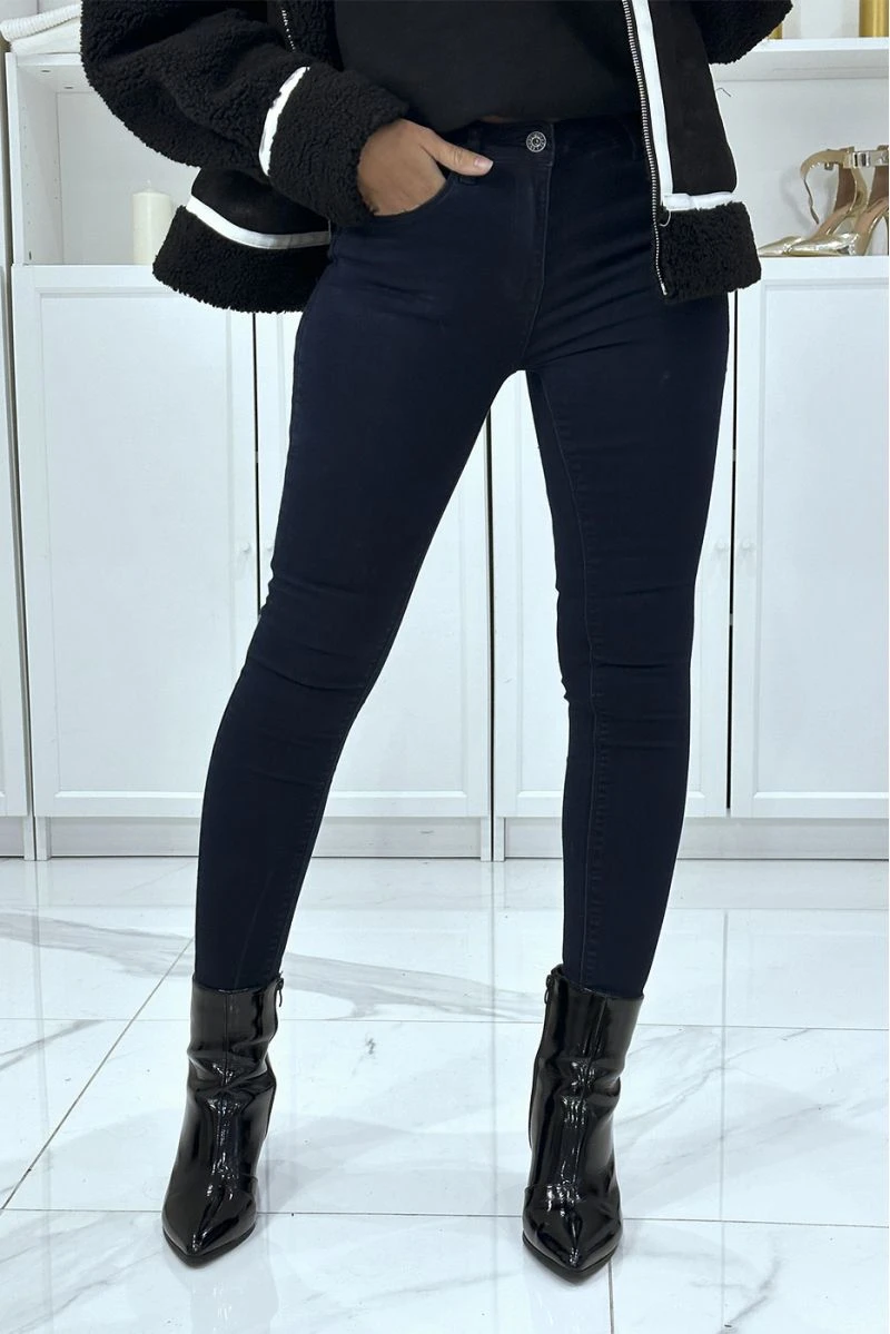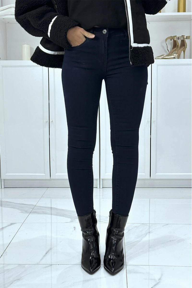 Jean slim marine extensible avec poches et fermeture zip