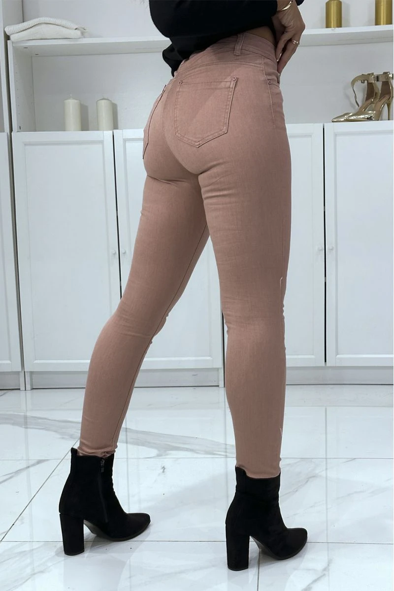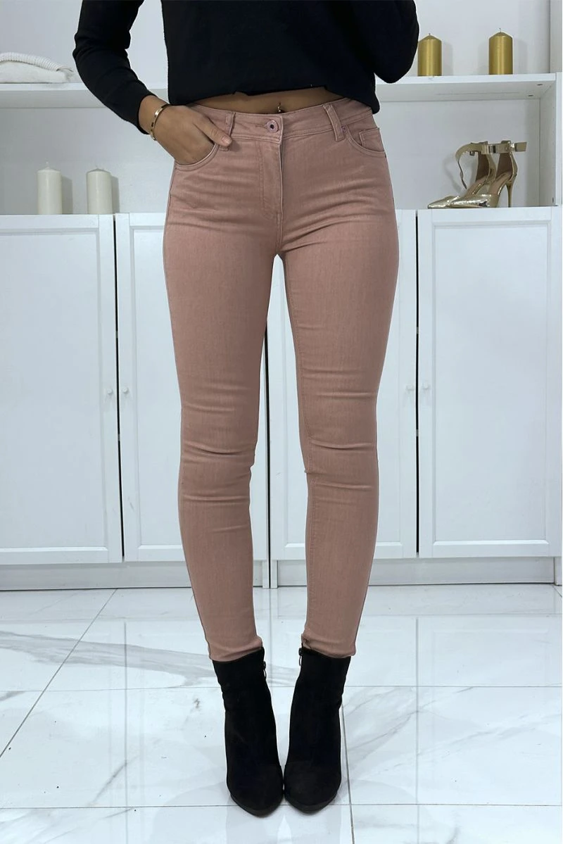 Jean slim rose extensible avec poches et fermeture zip