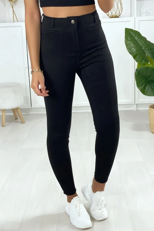 Jeans slim en noir avec poches à l’arrière. jeans femme pas cher