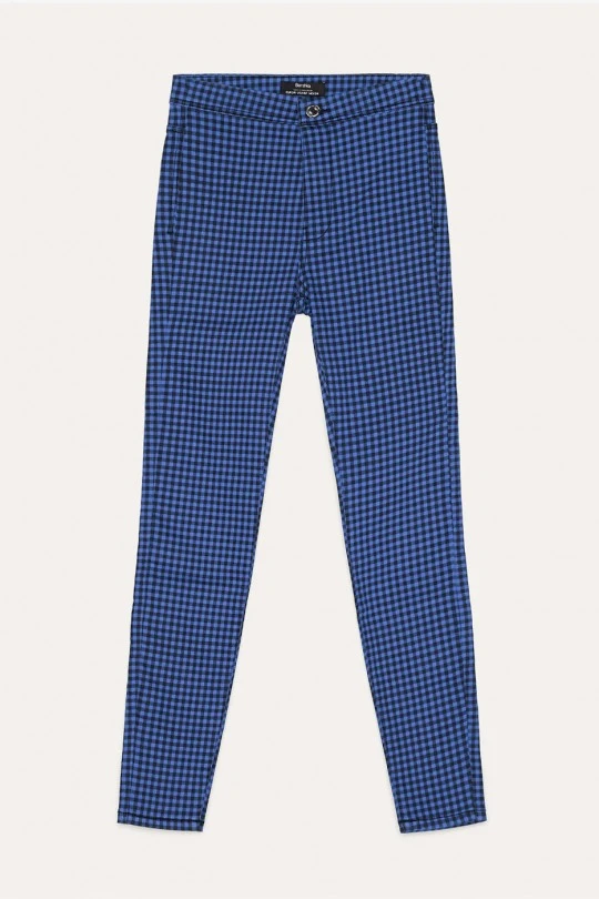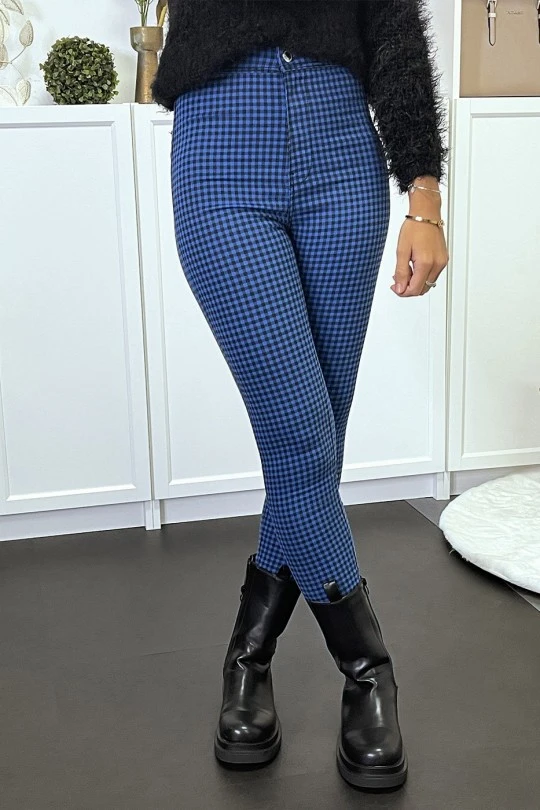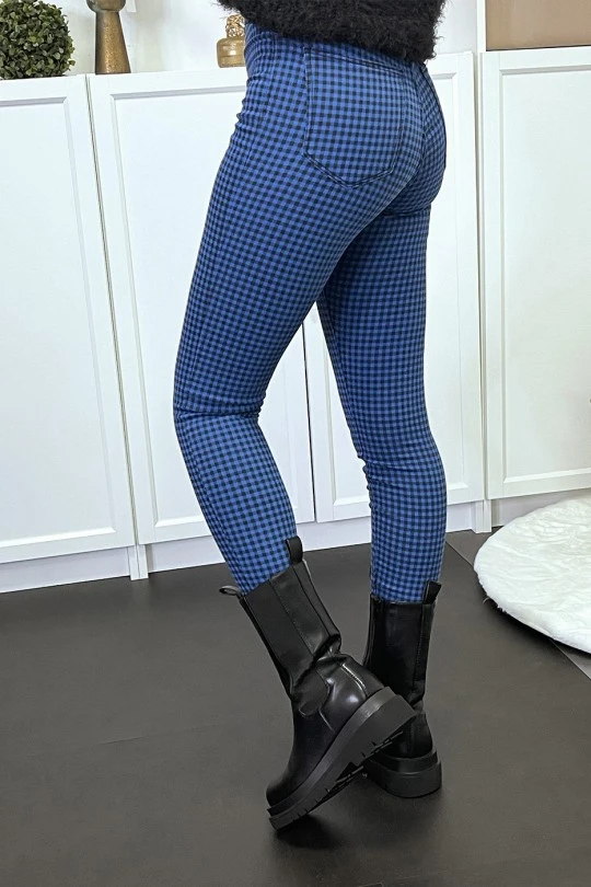 Jeggings bleu à carreaux avec poches arrières. Pantalon femme fashion et pas cher