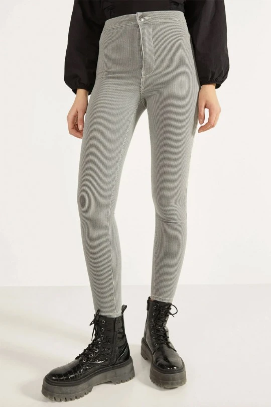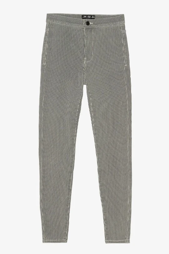 Jeggings noir et blanc rayé avec poches arrières. Pantalon femme fashion et pas cher