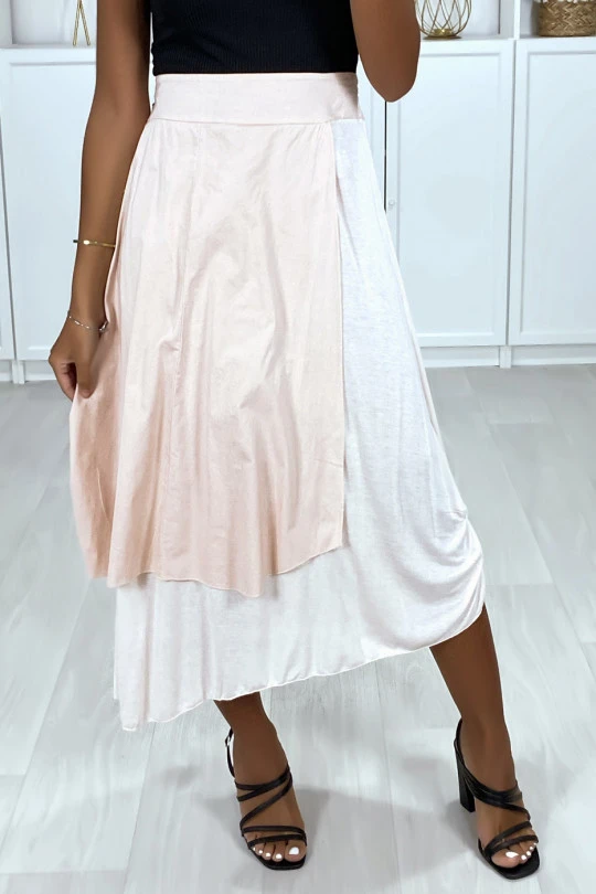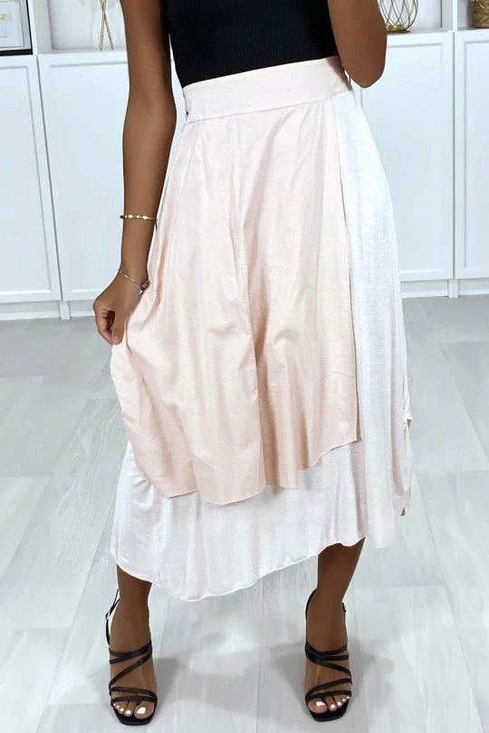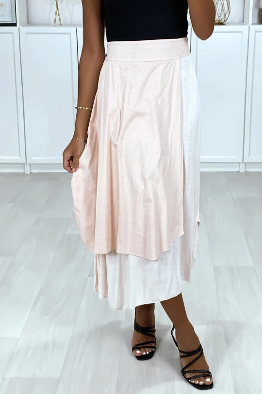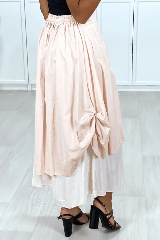 Jupe 2 en 1 en rose avec fronce sur le coté. Jupe longue tendance
