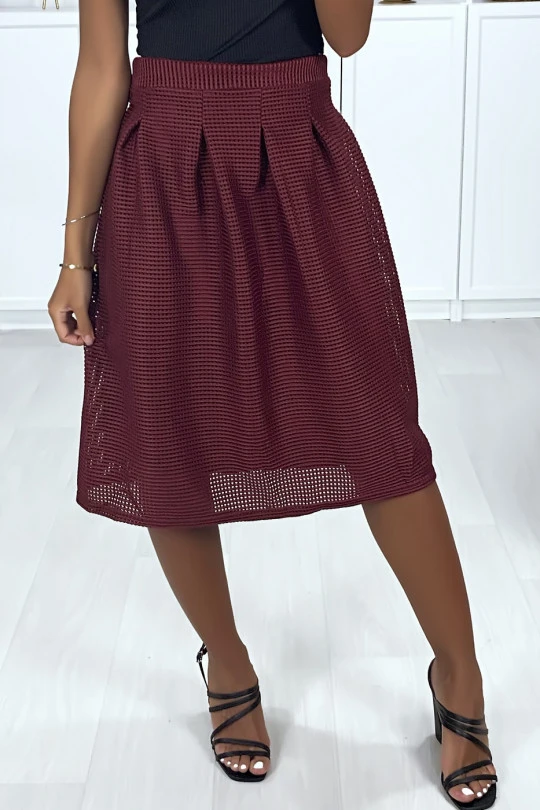 Jupe 3/4 bordeaux doublé avec plis à la taille. Vêtement femme pas cher