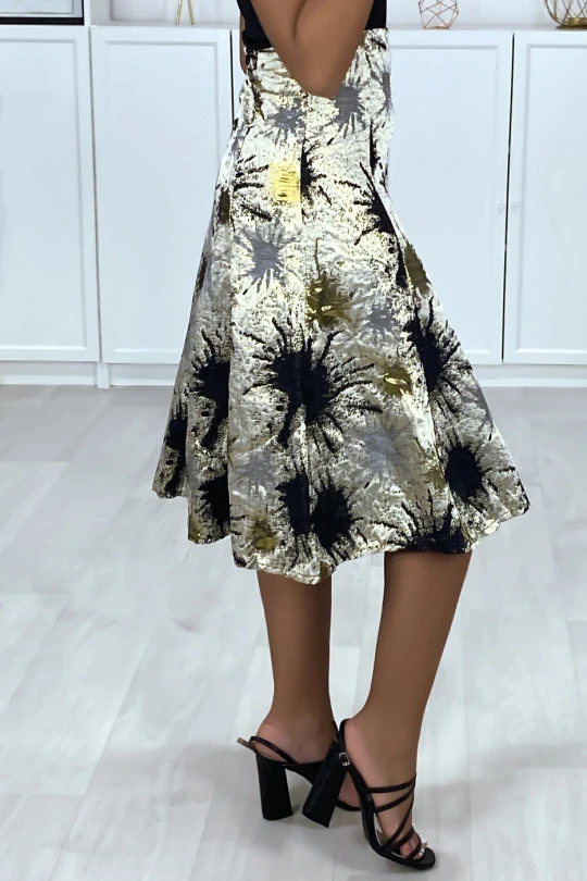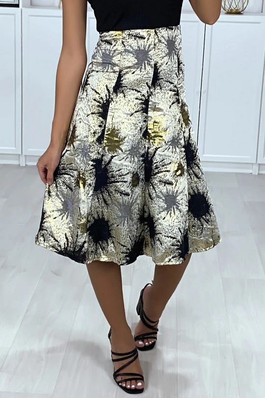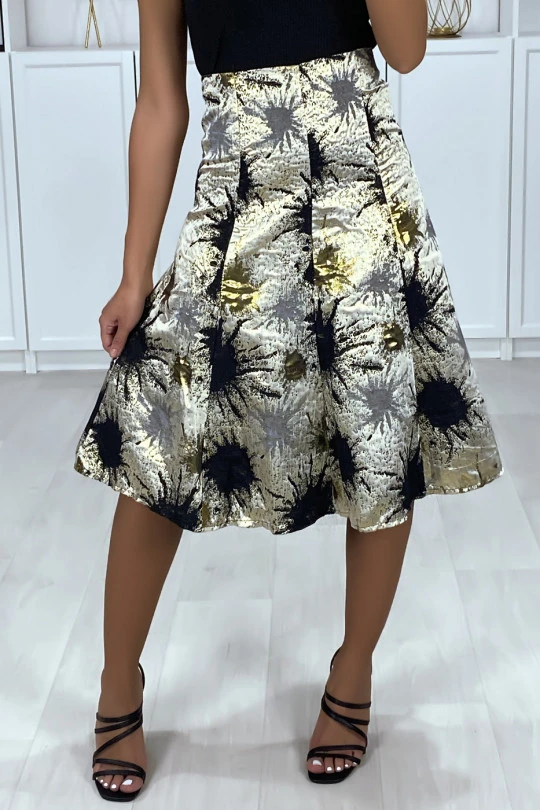 Jupe 3/4 motif noir et doré en jacquard. Jupe mode
