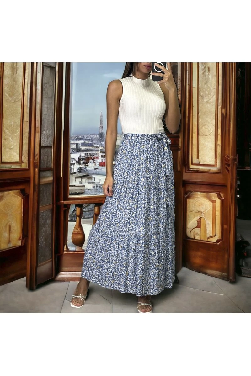 Longue jupe évasé motif liberty bleu
