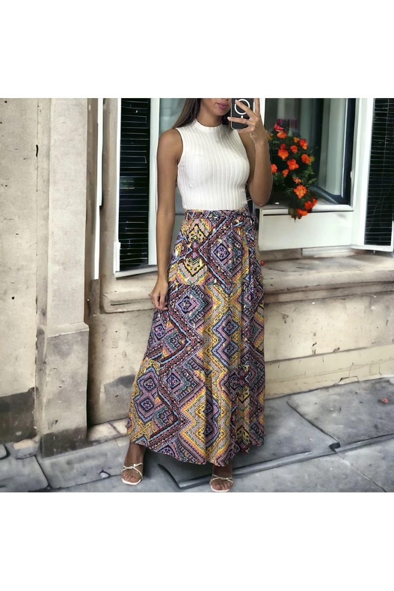 Longue jupe lilas évasé avec joli motif