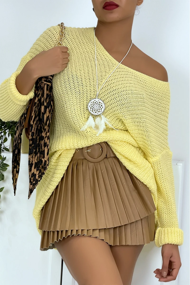Mini jupe plissé en simili camel avec ceinture. Jupe tendance et pas cher Femme