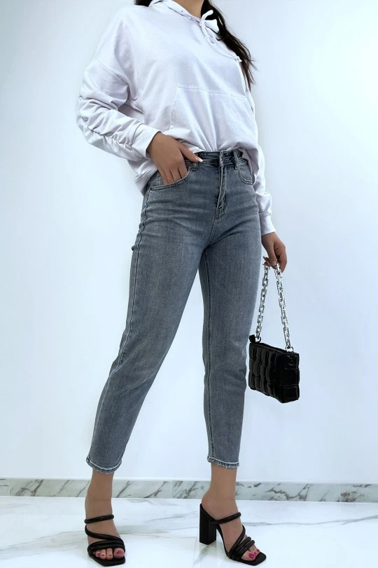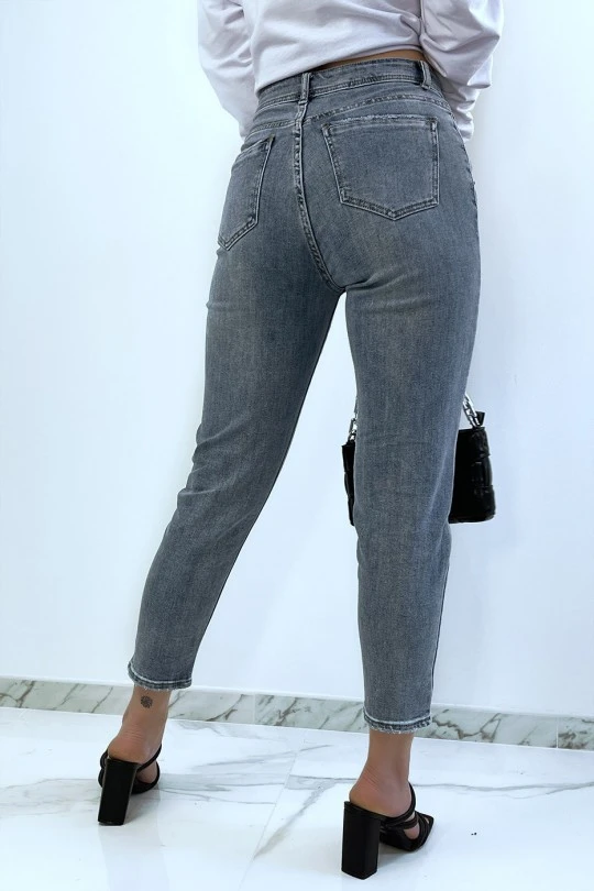Pantalon boy friend bleu délavé avec poches. Vêtement mode femme nouvelle collection
